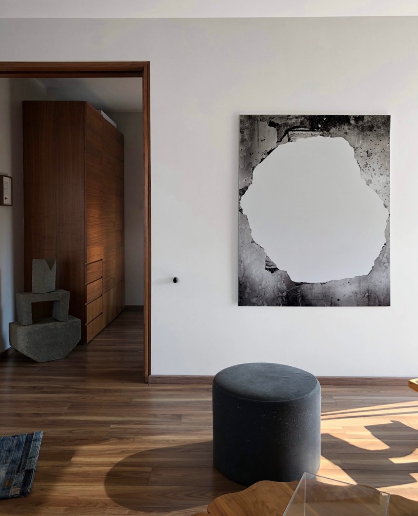 One of the questions I had in mind while arriving at Polina’s place was if she had an art collection. Silly question, I know, due to the fact that she is a gallerist, never the less it was a question that lingered in my mind. I once read that Marina Abramović doesn’t have a single piece of art hanging on her walls. My doubt about whether she collected became evident the moment I walked into her space. Polina has art all over the place.